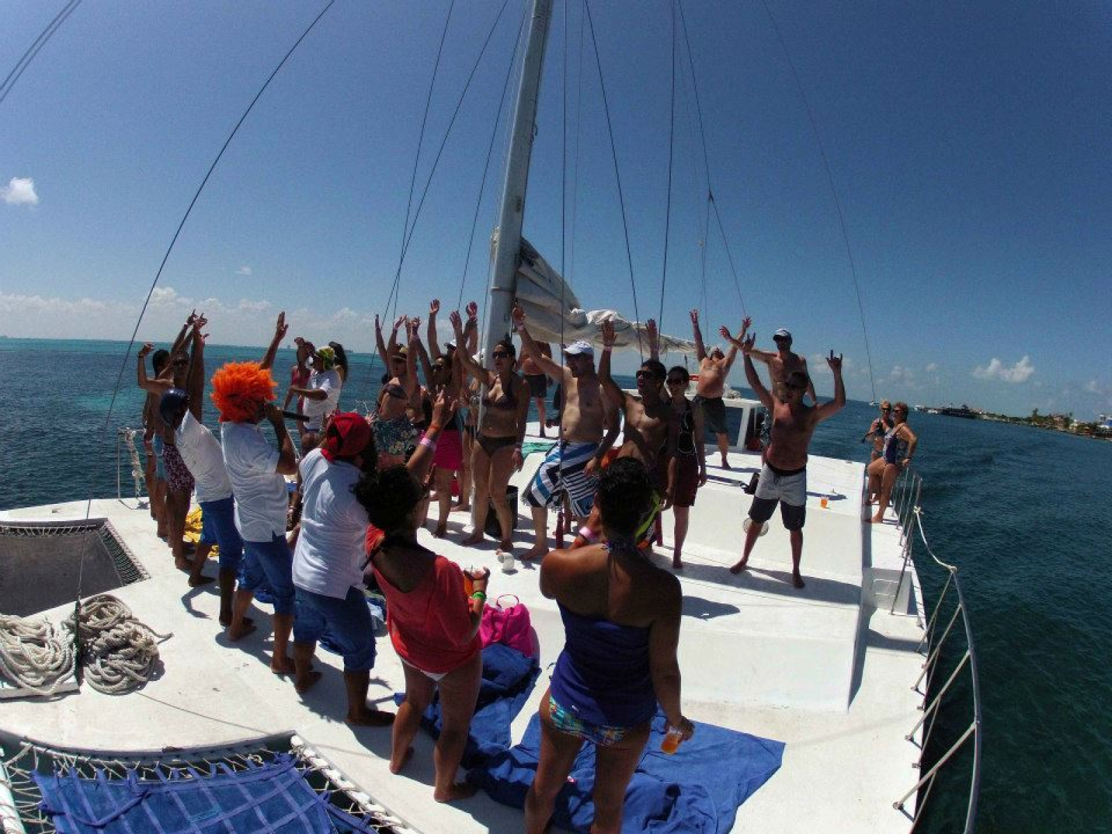 An amazing sailing journey to Isla Mujeres in a catamaran. Snorkeling and lots of fun!!! Make your vacation to the Mexican Caribbean a real vacation - get out on the water for a day and enjoy the crystal clear water of the bay between mainland Cancun and Isla Mujeres (Island of Women). Watch the water change from one shade of blue to another and then from one shade of turquoise to the next as the beauty unfolds before your eyes while you skim across the water. Join the fun and games on board or lay back and feel the warm Caribbean sun on your face, the sea spray on your skin, and the wind in your hair!