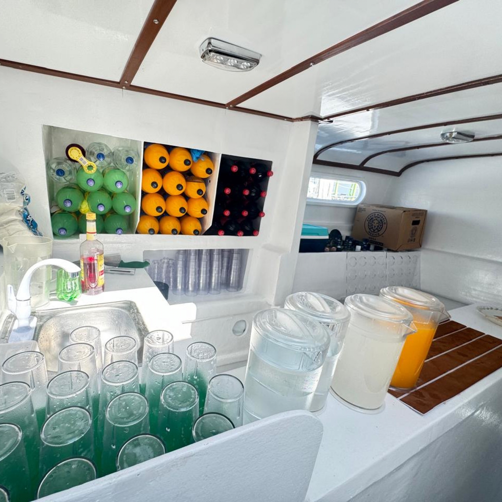 The "ISLA MORADA" is our luxury catamaran with a 42 feet length. Ideal for groups up to 30 people, fully equipped, four cabins, with bathroom, living room, kitchen, air conditoned, surround sound, CD, Ipod and MP3, lifejackets. Continental breakfast aboard, full snorkeling equipment. PREMIUM service.